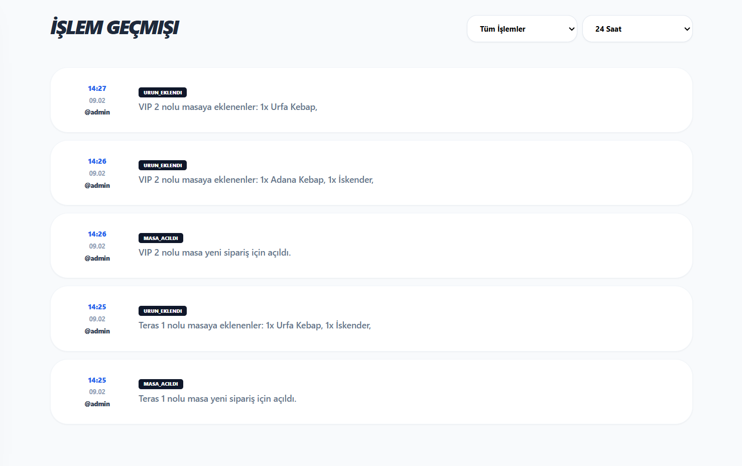 - Masa doluluk ve durum takibi
