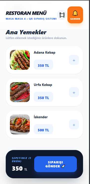 - QR ile temassız sipariş