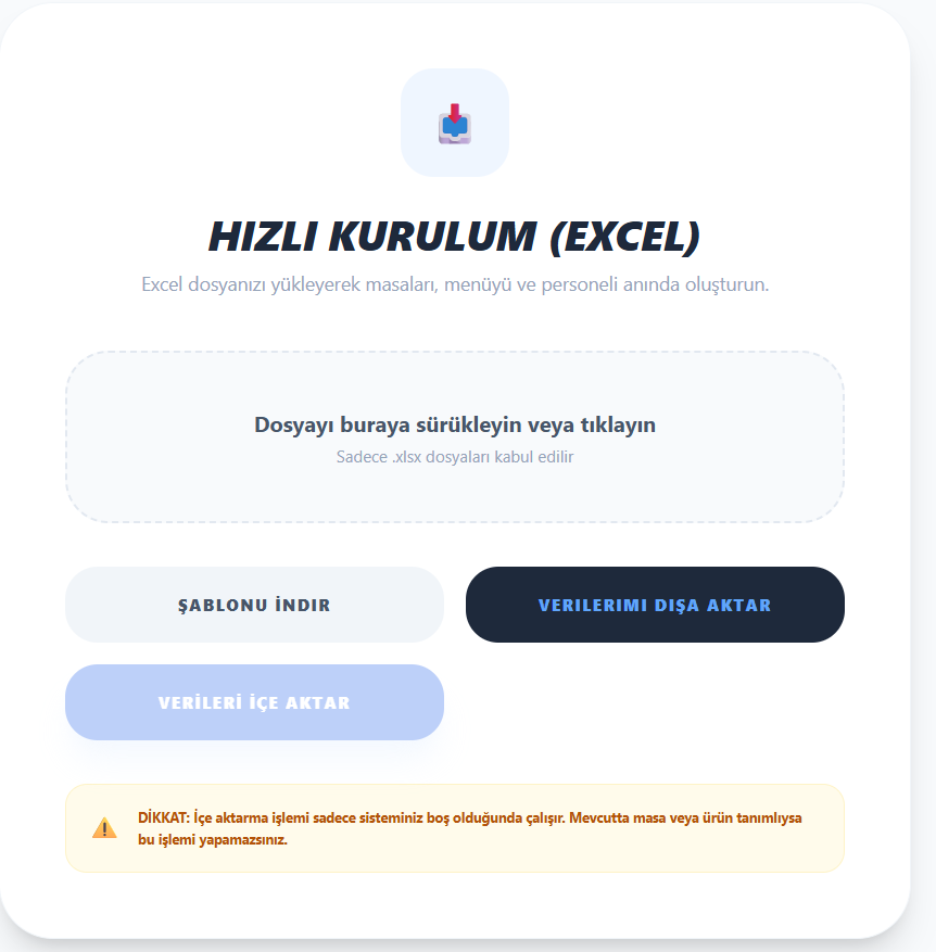 Hazır şablon ile hızlı kurulum ve veri aktarımı.